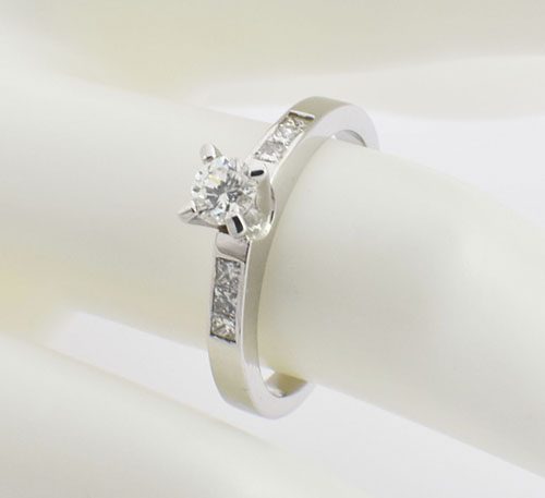 Anillo compromiso oro blanco con diamante de 0,22 quilates y 6 princesa ref.133-360