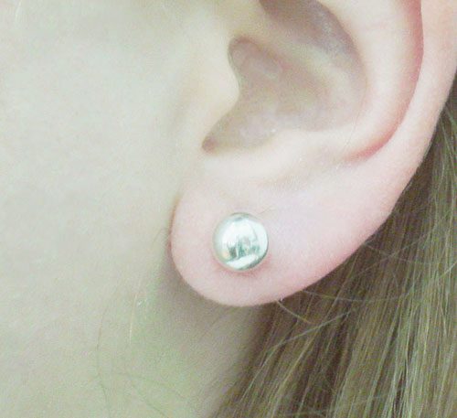 Aretes de plata ley 0,950 con peso 4 gramos. Diseño de esferas brillantes de 7 mm de diametro.
