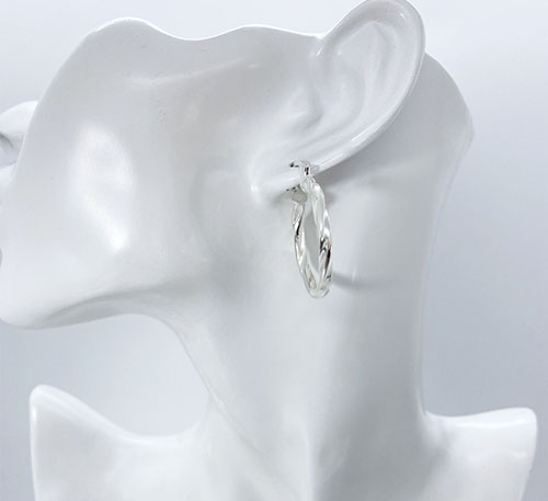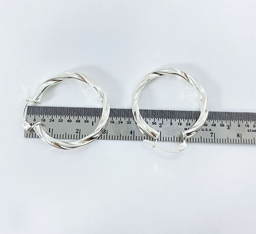Candongas de plata ley 0,950 con peso 4,5 gramos. Diseño de tubo delgado entorchado. Tamaño grande.