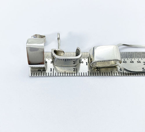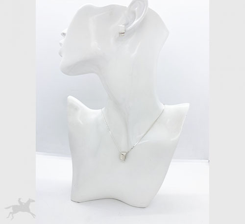 Set dije collar y aretes de plata ley 0,925, peso 6 gramos. Diseño de semicandongas pequeñas.